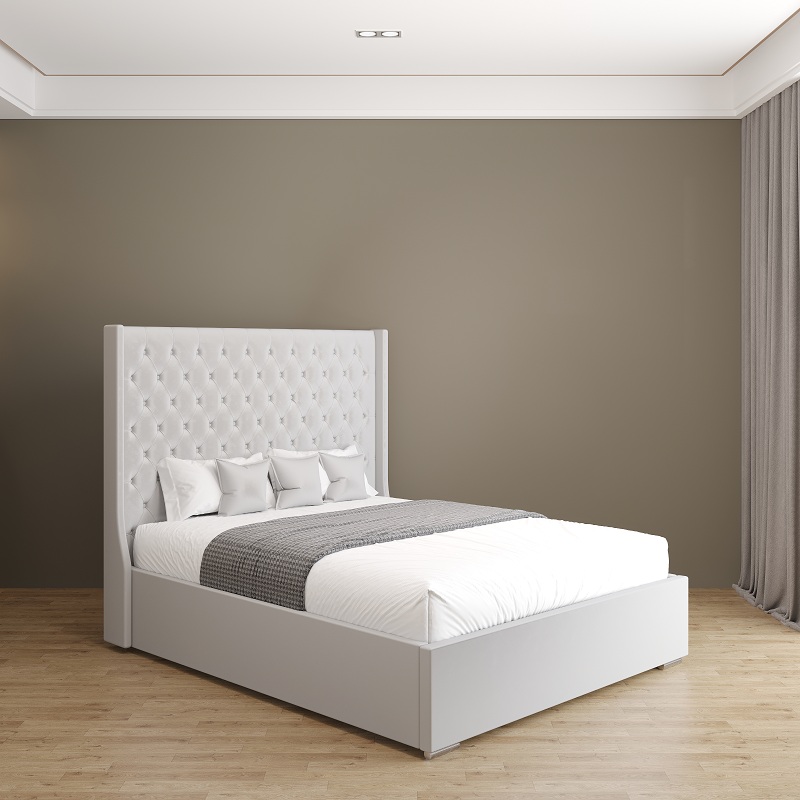 Ideal for traditional, vintage, or transitional decor, this exquisite and luxurious sleigh bed with a winged headboard exudes grandeur and sophistication. This opulent bed makes a striking focal point in any bedroom thanks to its striking frame and striking profile. A sturdy, long-lasting frame that can support heavy mattresses and last for many years is provided by the chesterfield-style upholstery with a winged headboard.
